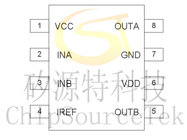 The CST861 provides an integrated brush-DC motor drive solution for battery-powered toys, low-voltage or battery-powered motion control applications. The H-bridge drive circuit with N-channel and P-channel power MOSFET is integrated in the circuit, which is suitable for driving a brushed DC motor or a winding of driving a stepper motor. The circuit has a wide operating voltage range (from 2V to 12.0V), with a maximum continuous output current of 2.6A and a maximum peak output current of 4A. The series circuits VCC and VDD are powered respectively, in which VCC is the logic power supply and VDD is the power supply.