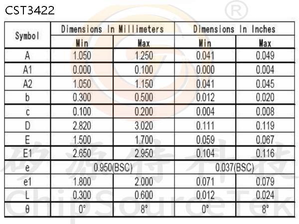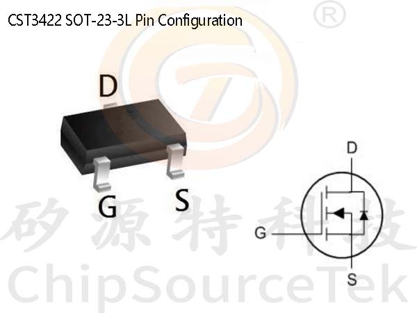 The CST3422 is the high cell density trenched N-ch MOSFETs, which provides excellent RDSON and efficiency for most of the small power switching and load switch applications.